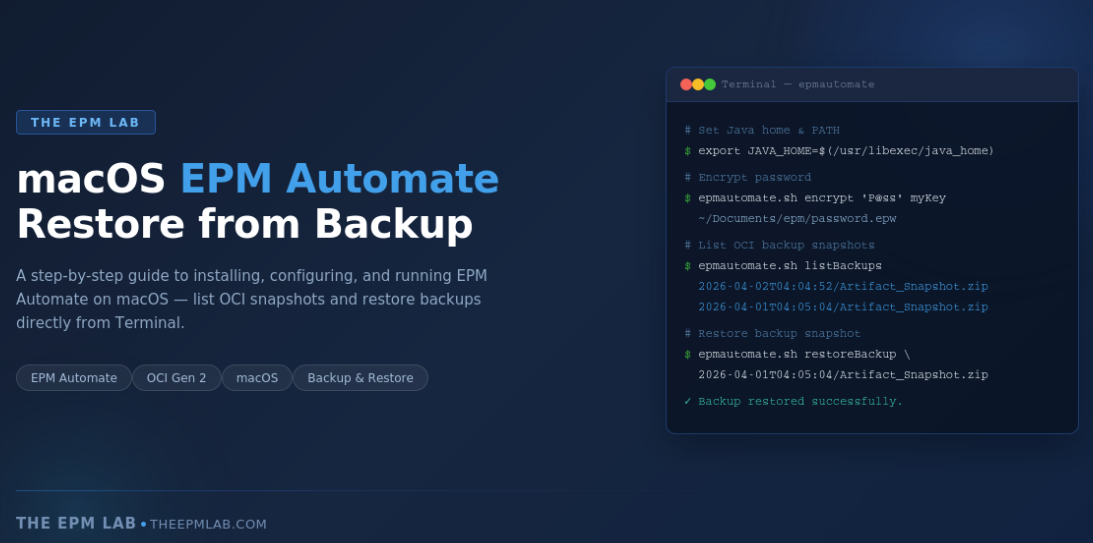 Introduction If you manage Oracle EPM Planning environments on OCI (Gen 2), knowing how to restore a backup is one of the most critical administrative skills you can have. Whether you are recovering from a bad data load, rolling back a configuration change, or simply archiving a snapshot before a major release, the restore workflow…
