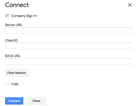If your organization uses SSO, check the Company Sign In checkbox and enter the required credentials: Server URL, Client ID, and IDCS URL. These values should be provided by your system administrator.