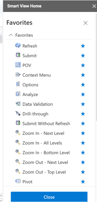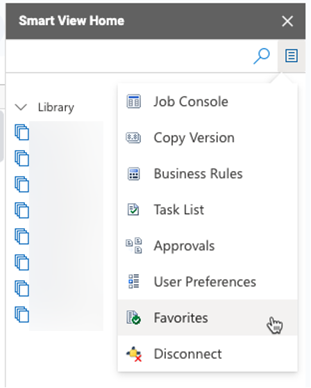 I’m glad Oracle released the Favorites feature. This lets you bookmark frequently used functions, making it significantly quicker to navigate Smart View without going through multiple layers of menus every time. You can access Favorites from the Smart View Home panel.